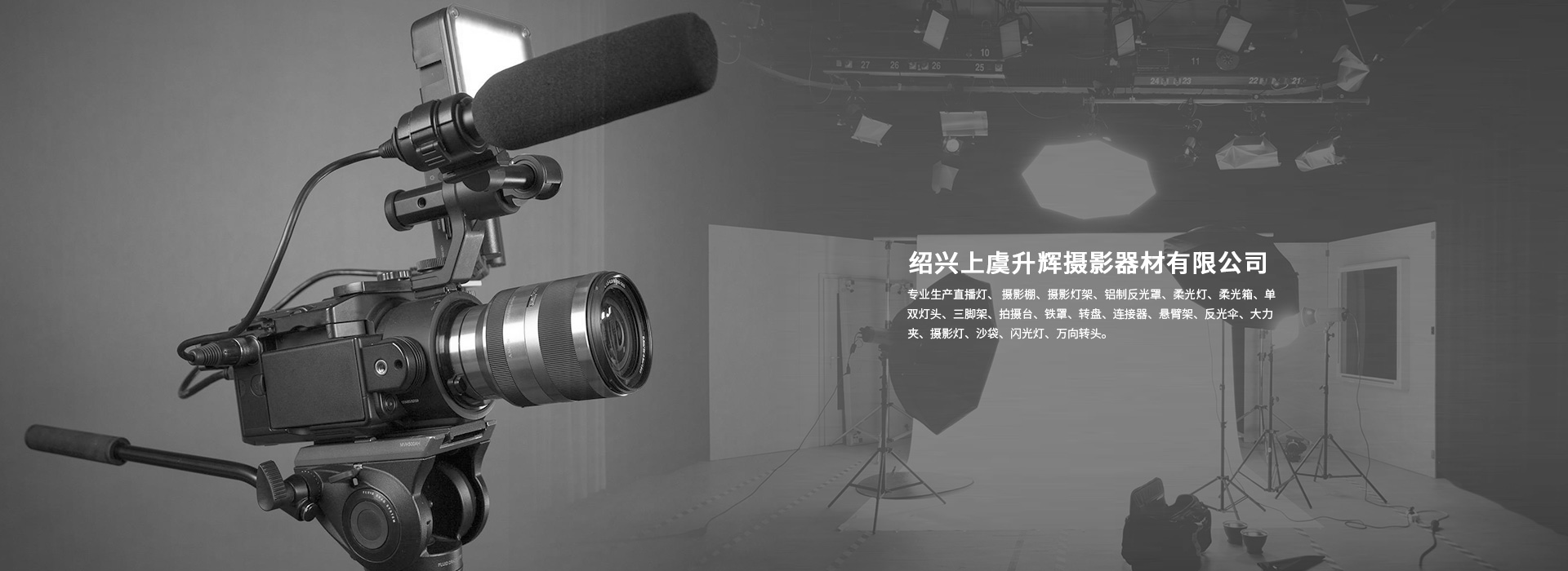 紹興上虞升輝攝影器材有限公司專業(yè)生產(chǎn)直播燈、 攝影棚、攝影燈架、鋁制反光罩、柔光燈、柔光箱、單雙燈頭、三腳架、拍攝臺(tái)、鐵罩、轉(zhuǎn)盤、連接器、懸臂架、反光傘、大力夾、攝影燈、沙袋、閃光燈、萬向轉(zhuǎn)頭。